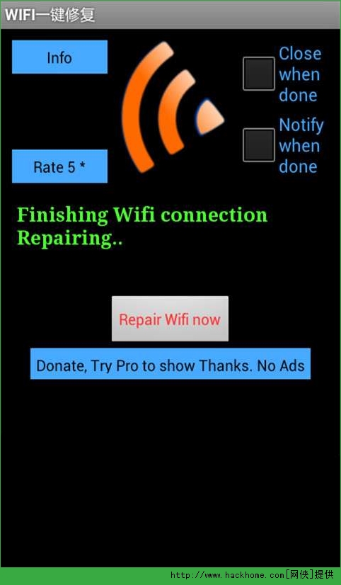 1、有时无线信号值低于最低值,甚至会自动关闭,WIFI一键修复可以增强接收无线信号的强度。