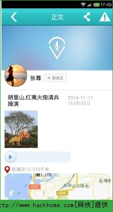 3、用户分享体验。维途为用户提供一个向公众分享语音体验的平台,用户可以是用维途记录在游览景点某处景点时的一段语音,照片,分享在维途应用上。