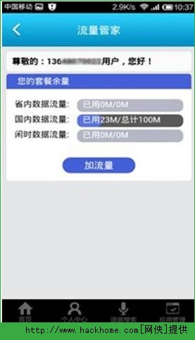 1、分流量类型查询,国内、省内、闲时流量一目了然;