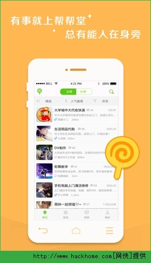 帮帮堂安卓手机版app:这是一款帮你找到身边的能人和服务的app,朋友们可以把您的的空闲时间和专业技能拿来分享或出售,既环保时尚又能快乐交友,分享正能量还能赚钱。还在想什么?快来下载吧!