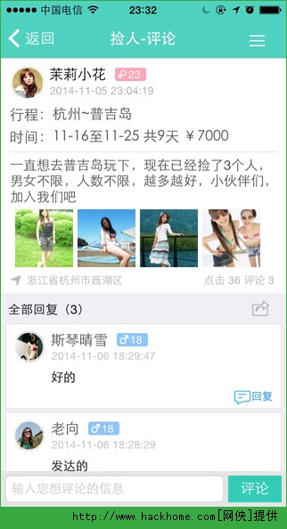 3、更侧重出境自由行,真实的驴友结伴捡人平台;