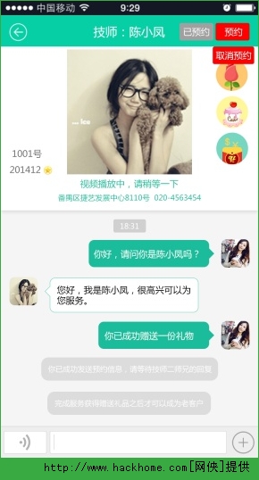 2、实时沟通——实现顾客足不出户与熟悉技师、附近技师及新技师的沟通;