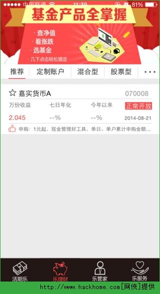 2.乐理财:基金产品全掌握,查净值,看涨跌,选基金,几下点击轻松搞定。