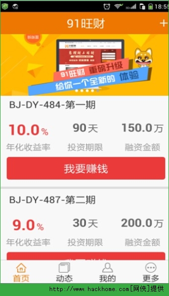 91旺财手机客户端apk是中国最安全、最专业的高收益理财平台。91旺财首页在以往简约界面的基础上进一步美化,整体布局更显美观大气,给用户一种焕然一新的感受,有了91旺财,从此理财再也不用愁了,欢迎下载!