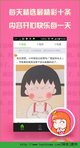 1、惊喜挑选:10条~!每天只有十条,每一条上榜的段子图片糗事都是经历了严酷的生存考验~!