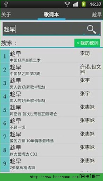 歌词本安卓手机版app是一款手机歌词搜索软件,在听音乐的时候没有歌词是不是很别扭,快用这款软件来查询一下,特别是一些新歌,有的没有歌词显示,这里的话还是比较全面的。