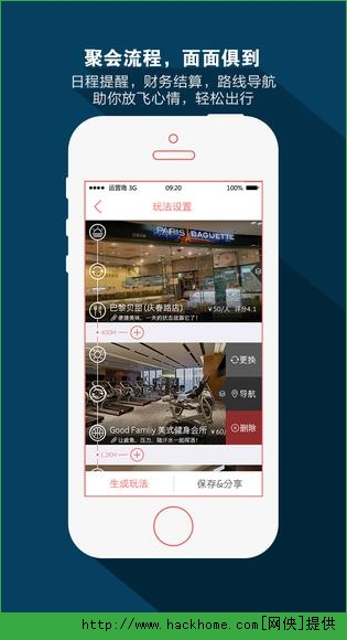 6.聚会行程齐分享:将自己产生的聚会行程分享到微信朋友圈、微博、人人网等网络社交平台,聚集身边的朋友一起加入聚会行程。