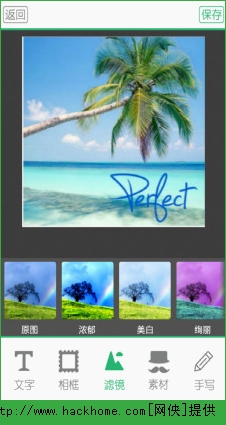 2、更有自动生成签名模式,只需打上您想写的话,便可以放到照片上,生成一个带有漂亮签名体的照片;