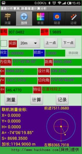 10、附属功能等(GPS导航、指南针、坐标正反算、大地和施工坐标转换、构造物计算、逐桩计算、仰坡计算、变坡计算等),将会根据需要,不断扩展常用功能。