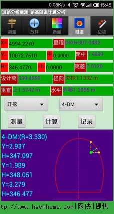 8、《道路分析掌测》可以在调用在内业版上编辑好的数据库;也可以在掌测上进行数据库编辑,主要包括平面、纵坡、断链、隧道断面等数据库,并和内业版数据库同步,数据共享;