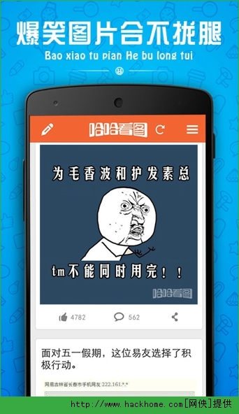 哈哈看图安卓手机版app是一款搞笑应用软件,和糗事百科差不多。里面有各种内涵图片、内涵段子,休闲无聊的时候来这里看看,让你乐开怀。