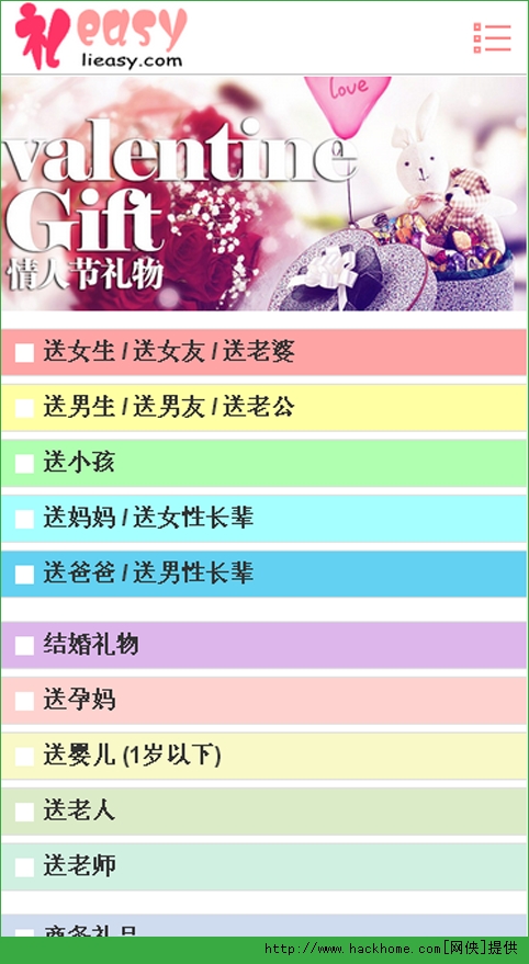 2、礼easy的愿望很直接——就是帮助用户快速找到最适合送的好礼物。以创新的有创意的礼物分类导购模式,为用户推荐最特别的好礼物。