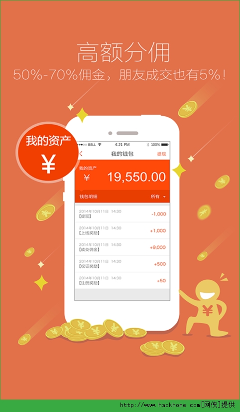 1、高额分佣:50%-70%佣金,朋友成交也有5%;