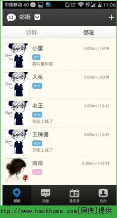 邻街网安卓手机版app是一款兴趣交友的app,来到这里可以根据地理位置找到附近的人,进入邻街的世界,认识相邻又有趣的朋友,在一起畅聊,也可以发送语音短信、视频、图片和文字,可以单聊及群聊的呦,快来体验吧!