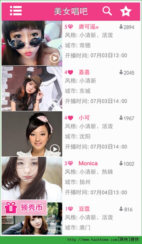 1、来天天唱,多人移动视频直播,让你手机天天看个够;