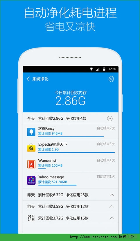 2.后台自启程序管理:完美管理自启程序,加快开机速度,提升手机续航时间;
