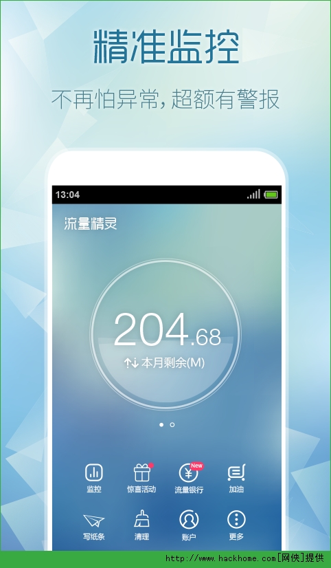 流量能存能取能送人,有免费流量还能赚流量。装在口袋里的流量银行,不再担心任何流量问题,交给精灵,智能随心。