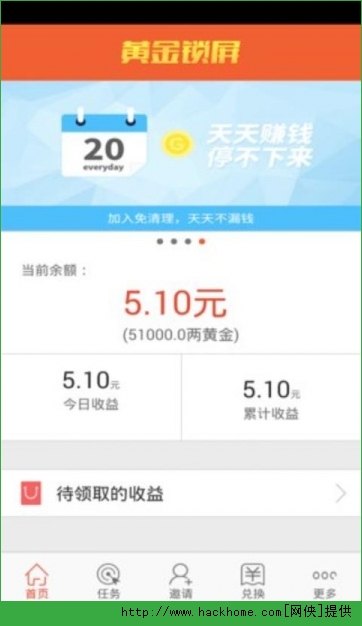 黄金锁屏APP,免费的锁屏赚钱应用,每天打开手机就能赚钱喽,这钱忒太好赚了~