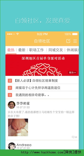 2、【社区】白领社区,自由的话题发表体验,还可以匿名吐槽,释放内心压抑;