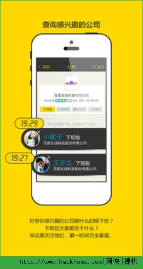 马上让你找到和锁定那些令你好奇的公司,员工们都几点下班,是什么样的状态。
