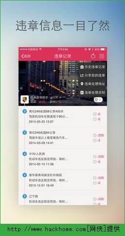 更多手机违章查询软件内容,请进入专题:https://www.hackhome.com/zt/sjwzcxrj/