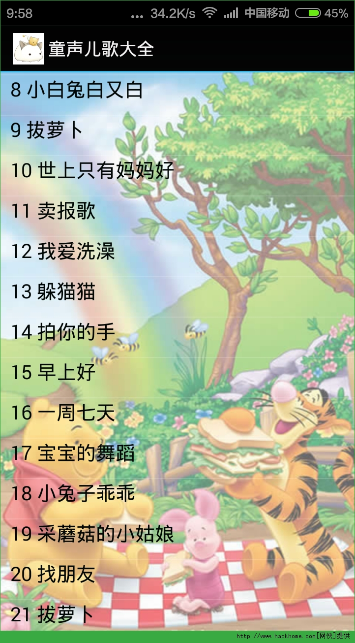 更多手机儿歌软件内容,请进入专题:https://www.hackhome.com/zt/sjegrj/