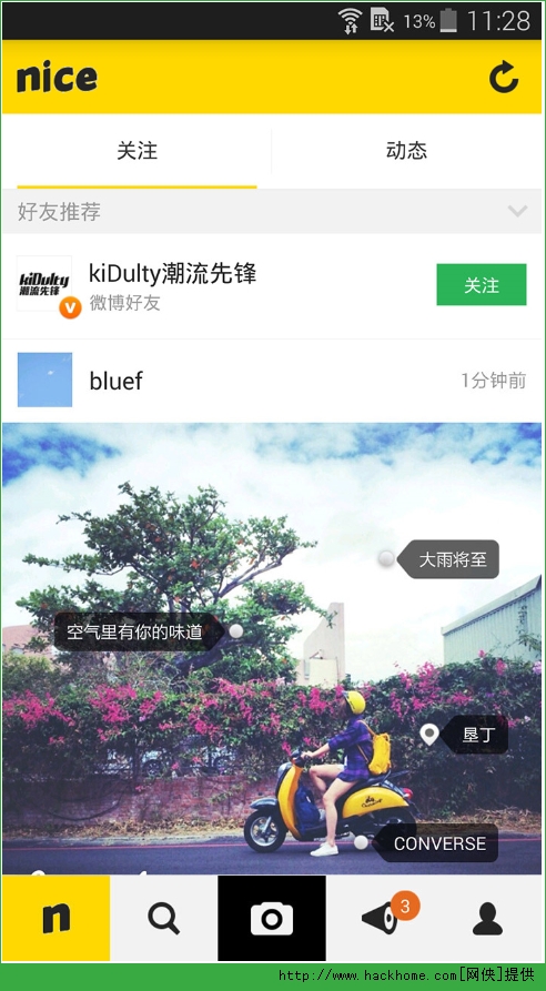 nice安卓版:一款图片分享社交软件,明星潮人都在玩!在Nice你可以分享你的美图或者有趣的照片、图片。还可以结交许多志同道合、热爱生活的朋友。在分享照片和生活态度的同时可以在照片上贴上如品牌、地点、兴趣等tag哦~