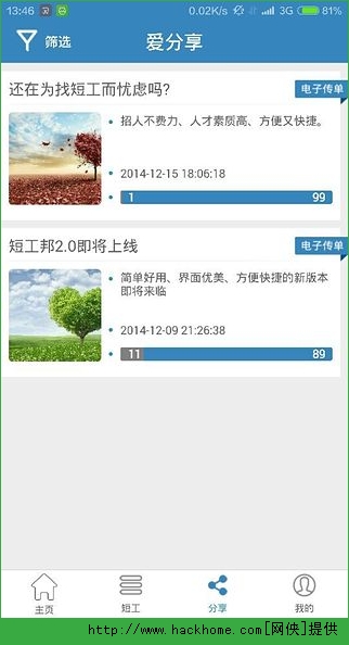 3.在短工邦,随时随地一键转发就你立马赚钱!