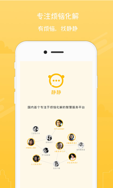 1、静静,连接有烦恼解决需求的用户和乐于互助分享经验的天使,有烦恼,找静静;