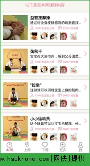 按照宝宝月龄注册,登陆早教平台进入阶梯课程早教室;按照宝宝的月龄自动匹配课程,每周更新一次,每周5-6个亲子课。