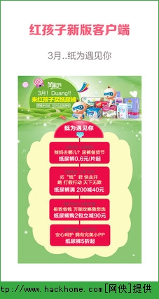 红孩子特卖APP,为妈妈们精选各类优质育婴产品,陪伴宝宝健康成长~