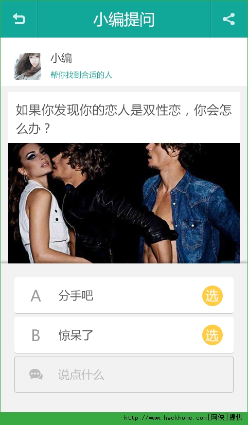 求搭理软件电脑版是一款恋爱交友工具,全新交友模式,搭讪利器,再也不必担心和异性聊天时无话可说,再也不必担心寂寞时无人搭理,再也不用担心有难题时举步不定,让你更加快速的与陌生人相识。