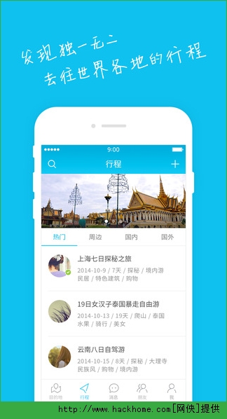 5、开始旅行,创建行程,随时用文字、图片和视频记录分享路上的精彩;