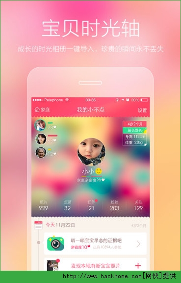 家人亲友实时同步宝贝的成长记录,让出差的爸爸,远方的长辈都能实时关爱宝宝。