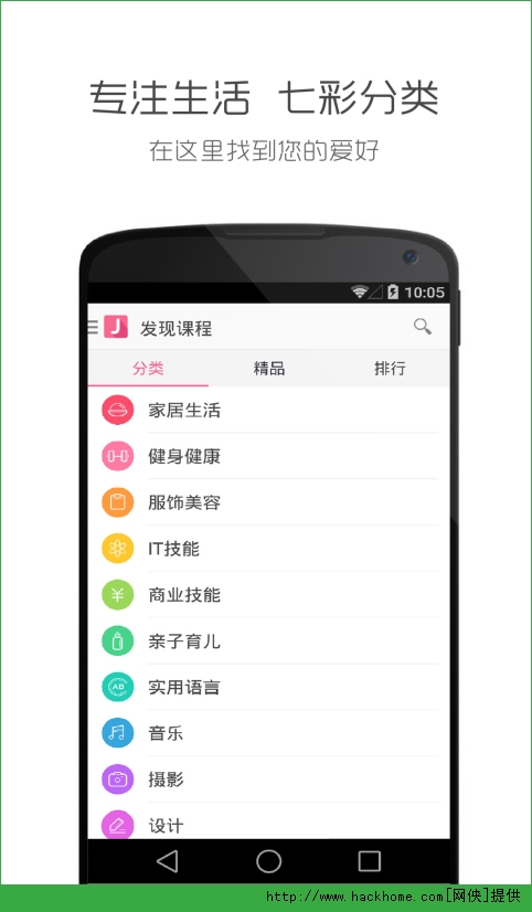 佳学是一个接地气的在线教育平台,专注为用户提供生活技能教程,涵盖了家居生活、健身健康、服饰美容、实用软件、商业技能、亲子育儿、实用语言、音乐、摄影、设计等多个领域。