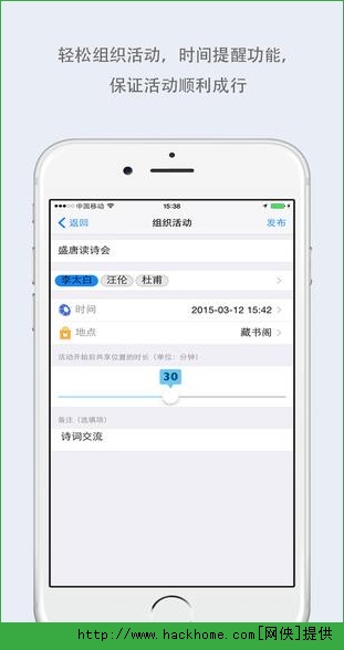3、如果几个朋友想聚聚怎么办?没关系,发布一个活动,然后邀请他们加入。活动快开始时系统进行提醒,开始共享位置,这时候,参加活动的朋友都能看到彼此的位置移动,谁谁到哪了都知道。如果你到了目的地,系统会自动告诉其他人,我已经到了,你们加紧点吧。