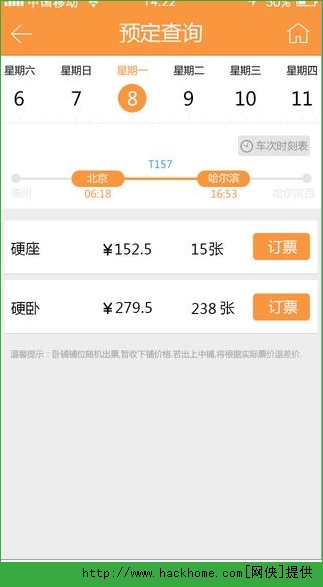 6.支持火车票订票功能,用户可在售票点或火车站自取票。
