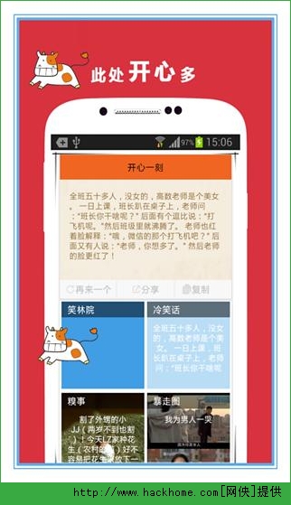 汇集互联网上各类新鲜流行的笑话段子,实时更新,支持复制分享