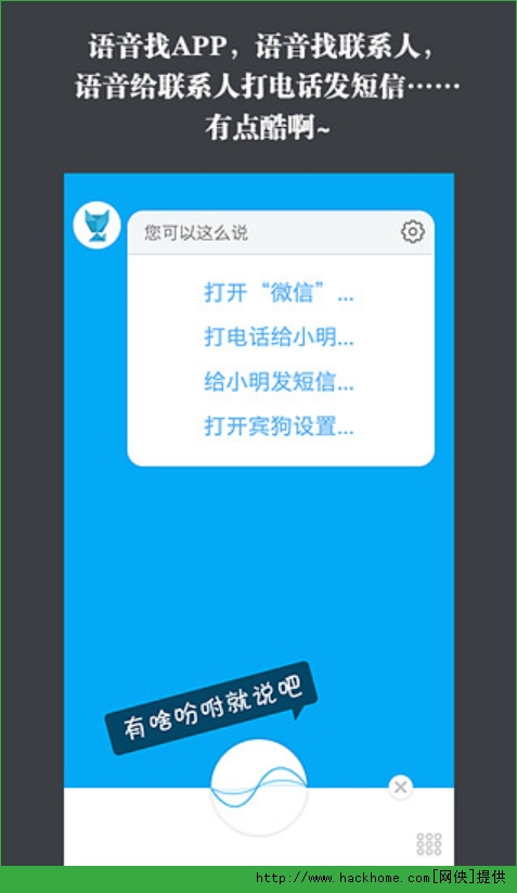 2、对宾狗说出你的要求——聊天、玩游戏、打开微信、吃饭、看电影……立刻找出相关APP;