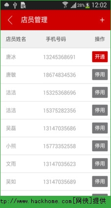 4.店员管理:新增门店店员或者停用门店店员,便于店长管理店员。