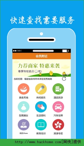 3、随时随地寻找美食、酒店、娱乐等商家;