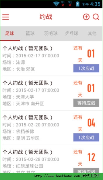 通过约战平台马上找到当地的运动伙伴,让体育变成社交,让运动更有趣。