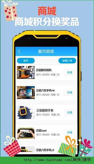 3、酷币计划,在享受运动的同时,可以获得酷币积累,换取云狐超炫的各种土豪产品:酷炫相机、六防手机、酷跑手表等。