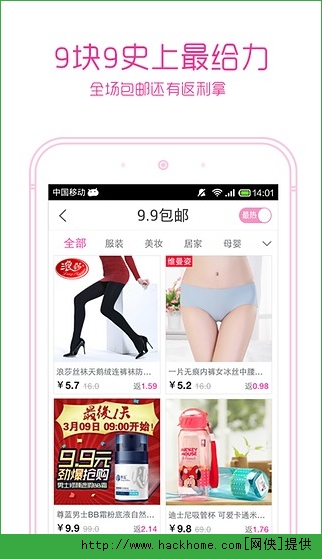 3、9块9包邮购、会员专享、超高返利、天天特价等专门为你而省,省到没话说;