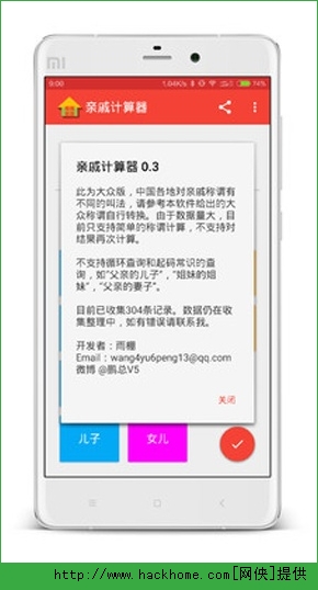 1、亲戚计算器为大众版,中国各地对亲戚称谓有不同的叫法,请参考本软件给出的大众称谓自行转换;