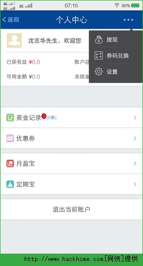 2、查询账户余额、收益、提现;