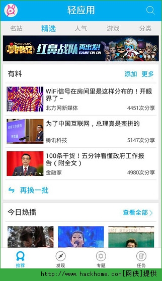 1、轻应用是一款html5应用分发平台,现汇集了数千款朋友圈小游戏、Html5精品应用。