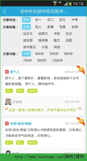 2、丰富的资源库:涵盖从小学到高中所有年级,包括单元同步作文,满分作文等优秀范文;