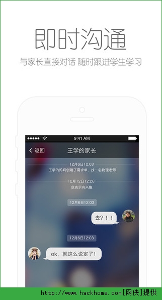 2、即时沟通:与家长直接在线对话,支持语音与文字,无障碍沟通。