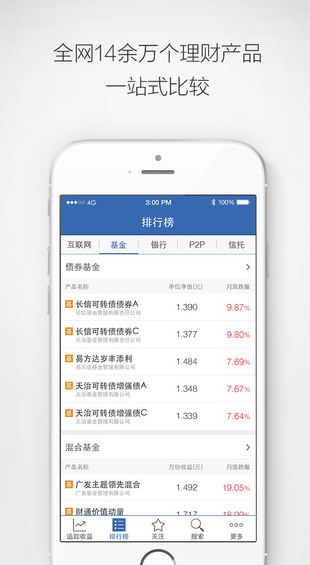 互联网理财、P2P、基金、银行理财、信托各类型一站式比较。